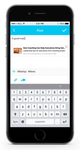The app offers you one-touch options to share photos, articles, events, newsletters and much more. You can create hash-tags according to the nature of the post, making it easier to consume content based on one’s interest, industry or need.